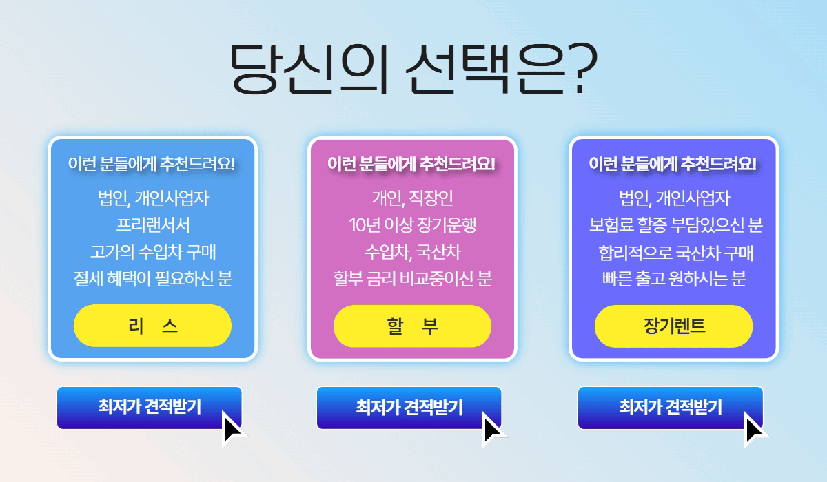 구매방법 : 장기렌트 / 지역 : 서울 / 담당자 : 장정훈 대표